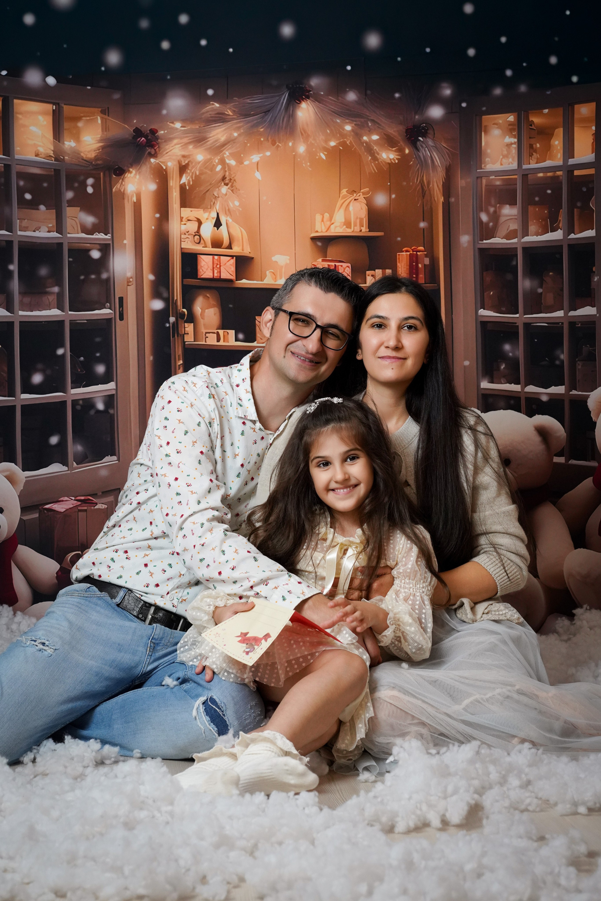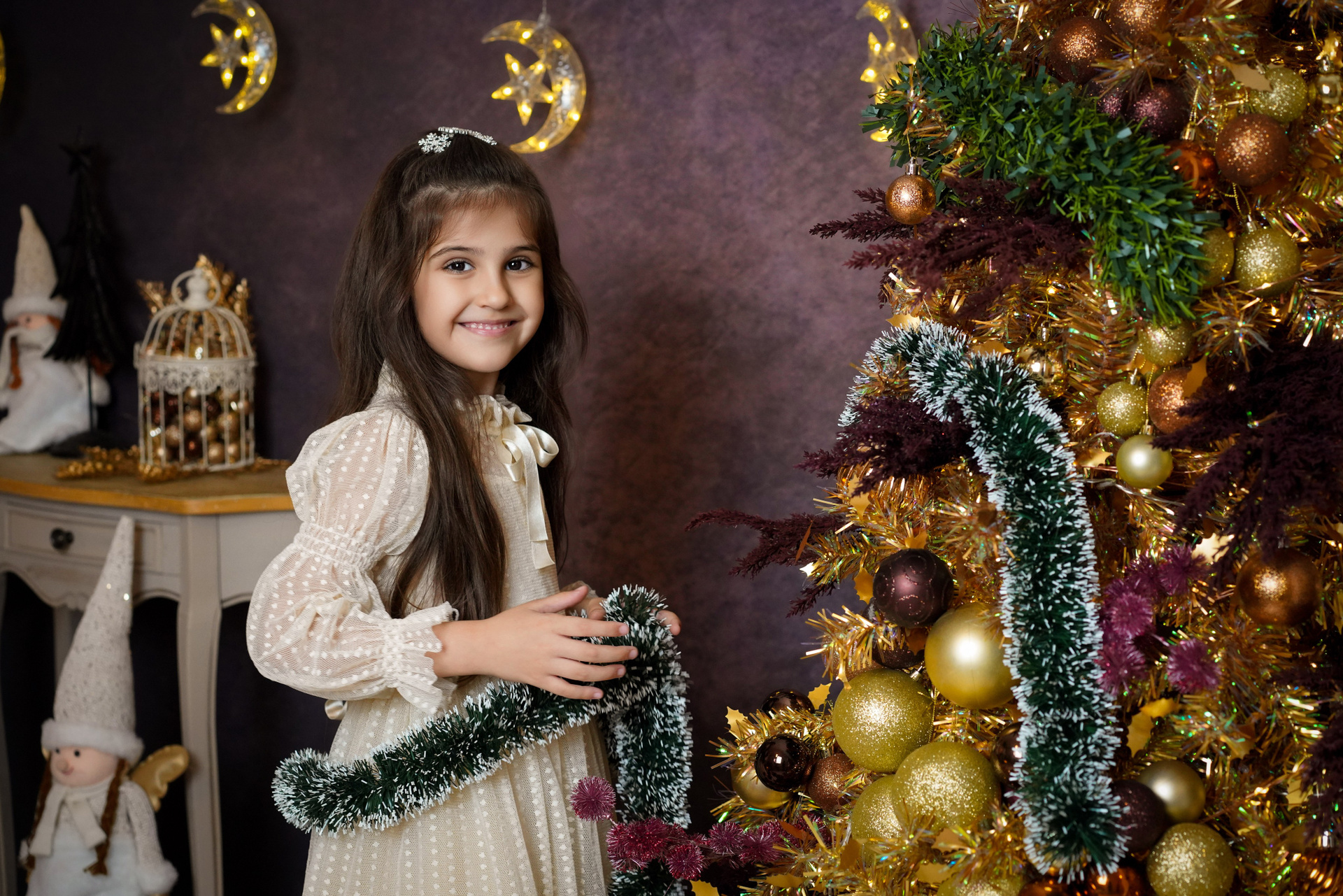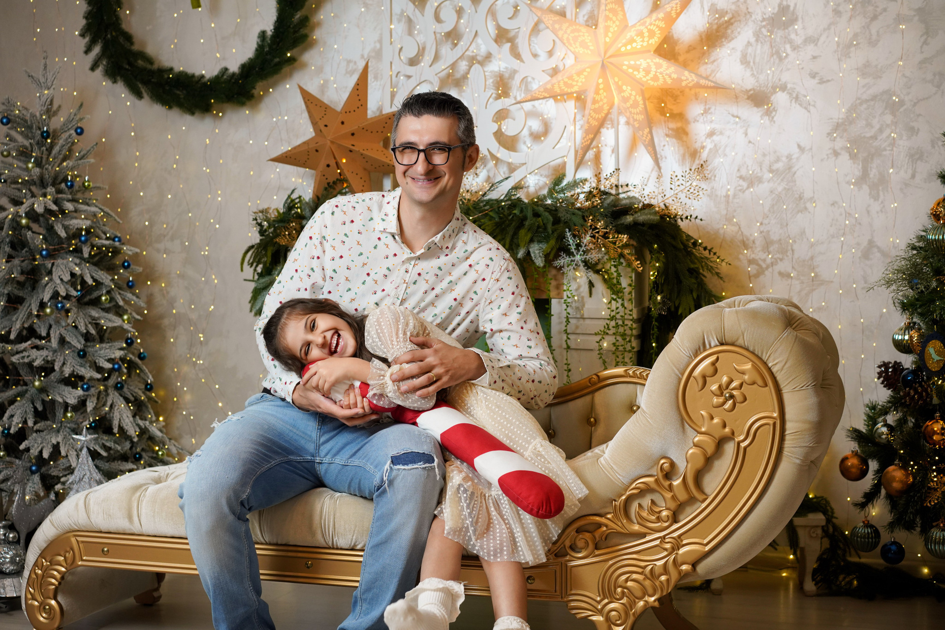 Este o sesiune foto tematică, realizată în perioada sărbătorilor de iarnă, care reflectă atmosfera festivă a Crăciunului. Poate include decorațiuni tradiționale (brad, luminițe, cadouri), ținute specifice sărbătorilor (pulovere de Crăciun, rochițe elegante), sau chiar momente spontane de familie.