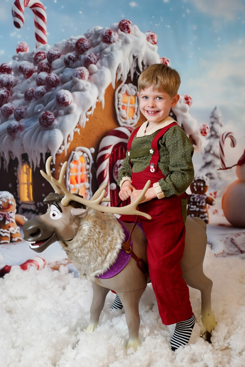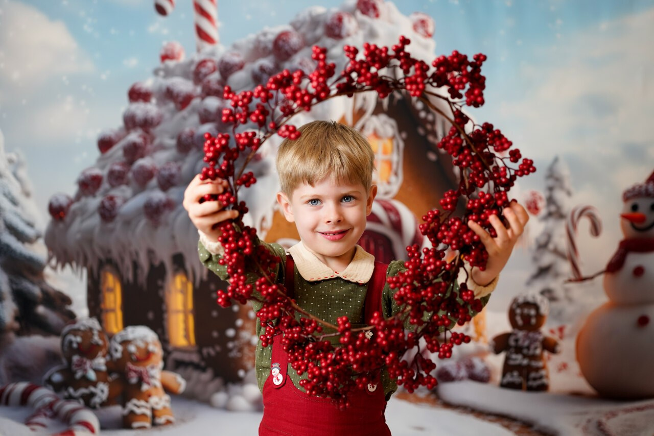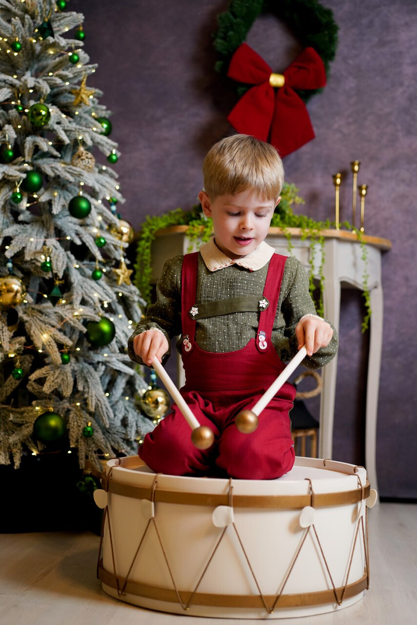 Este o sesiune foto tematică, realizată în perioada sărbătorilor de iarnă, care reflectă atmosfera festivă a Crăciunului. Poate include decorațiuni tradiționale (brad, luminițe, cadouri), ținute specifice sărbătorilor (pulovere de Crăciun, rochițe elegante), sau chiar momente spontane de familie.